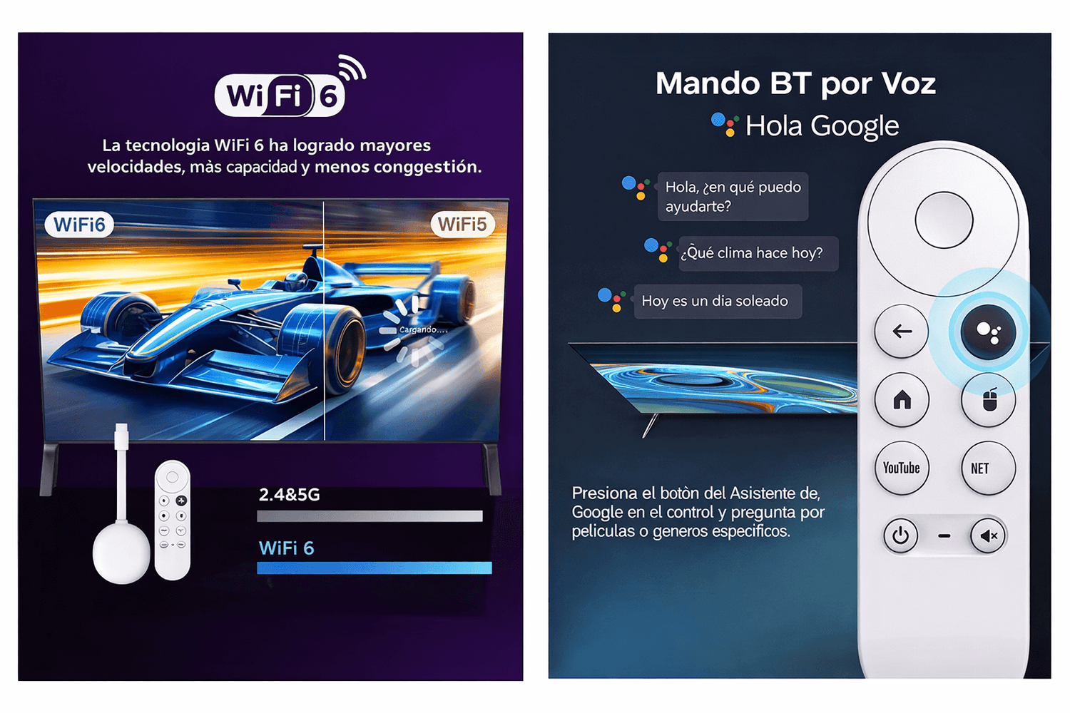 ▪️Control por voz: Usa el Asistente de Google para controlar tu TV y buscar contenido con comandos de voz.